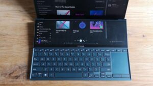 This is the smallest entry in the ZenBook Duo line-up, both in terms of size and power. If you’re in the market for something a bit bigger and a bit more powerful, turn your attention towards the new Asus ZenBook Duo Pro 2021.