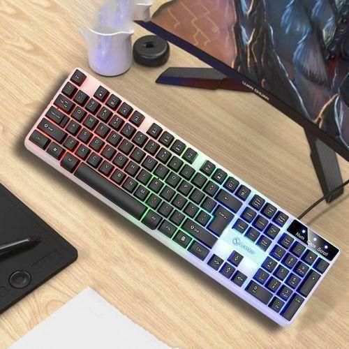 RGB backlight keyboard, greatly enhance gaming atmosphere.Two-color injection molding keycap, not easy to fade.The FN group of multi-function shortcut keys allow you to do whatever you want in office work/game.Ergonomic design, the keyboard and mouse fit the hand curve, comfortable hand feeling, reduces fatigue.Anti-skid roller design, delicate texture, smooth movement, stable and comfortable operation.Simple and streamlined design, dignified and stable appearanceSuspended key cap structure, similar to mechanical handfeeling, comfortable knocking and strong reboundRAINBOWBATTLE LIGHT EFFECT.The light transmission is uniform and delicate, and the luminous effect is better in dark environment