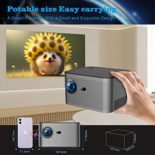 ✅ 【Multi-compatibility & Technical Support】This compact multifunctional smart projector can be held in one hand, easy to carry for any scene. Equipped with HDMI, USB, audio interface, you can easily connect to your cell phone, computer, tv box etc.